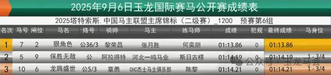 第6场 2025塔特索斯.中国马主联盟主席锦标