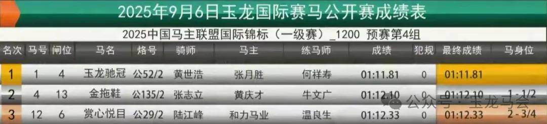 冠军:玉龙驰冠 马主:张月胜 骑师:黄世浩