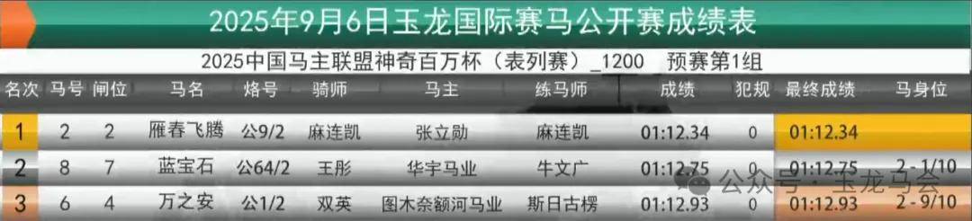 首场为中国马主联盟神奇百万杯(表列赛,1200米),“雁春飞腾”从出发便保持领先,最终率先冲线,赢得其职业生涯首个冠军。第二场中国马主联盟殷利殊杯(表列赛,1200米)中,“独步天下”后来居上,实现三连冠伟业。第三场中国马主联盟育马者杯(一级赛,1200米),原本落后的“侠女柔情”在最后直道从外道强势反超,一举夺冠。第四场中国马主联盟国际锦标(一级赛,1200米)中,“阿拉巴马速递”的后代“玉龙驰冠”出闸后迅速抢占内栏位置,并持续紧跟领先集团,最终在冲刺阶段发挥出色,成功卫冕,达成三连冠。