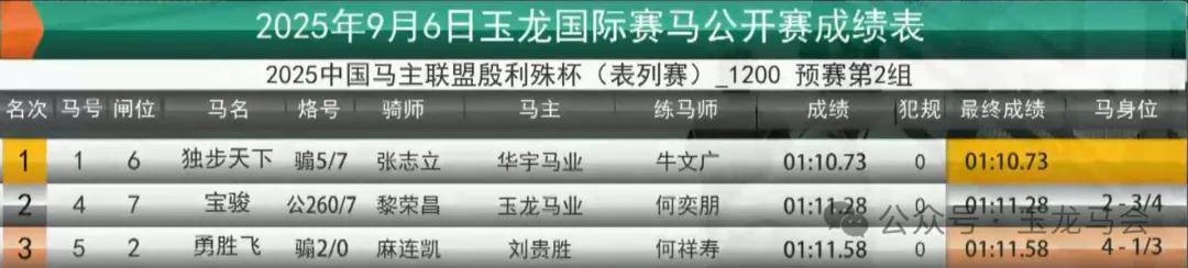 冠军:独步天下 马主:华宇马业 骑师:张志立