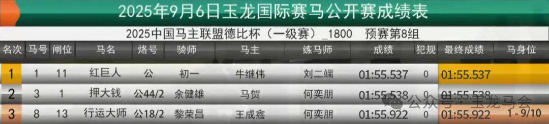 冠军:红巨人 马主:牛继伟 骑师:初一