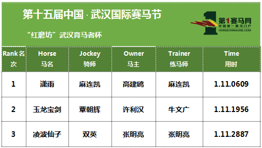 ▲“红磨坊”武汉育马者杯(1100米)冠军“潇雨”