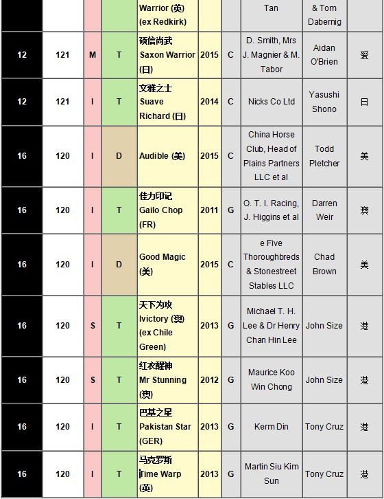 香港马方面,荣登本月榜单的中国香港马匹依旧是4匹。除了上文提到的“巴基之星”、“天下为攻”(Ivictory)、“红衣醒神”(Mr Stunning)三驹,“马克罗斯”(Time Warp)也以120分与其余6居并列在第16名。