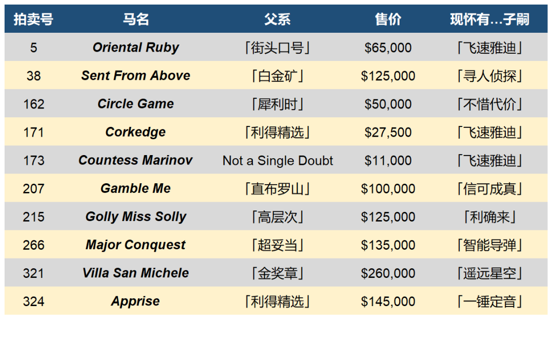 玉龙马业在本次澳洲繁育母马拍卖会上共斥资1,044,000澳元(约人民币483.2万元)将十匹优质繁育母马收归囊下: