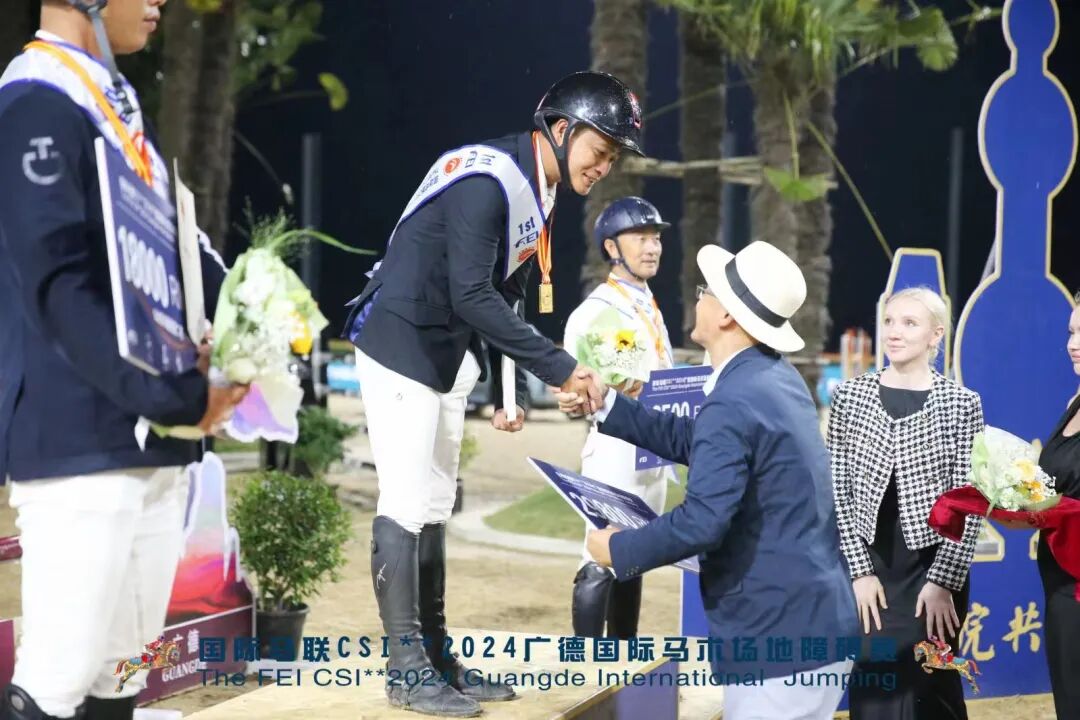 值得一提的是,这是今年内这对搭档继国际马联CSI2*2024广德国际马术场地障碍赛、国际马联CSI*2024马术场地障碍城市系列菁英赛(东莞站)后,再次夺该级别的冠军。