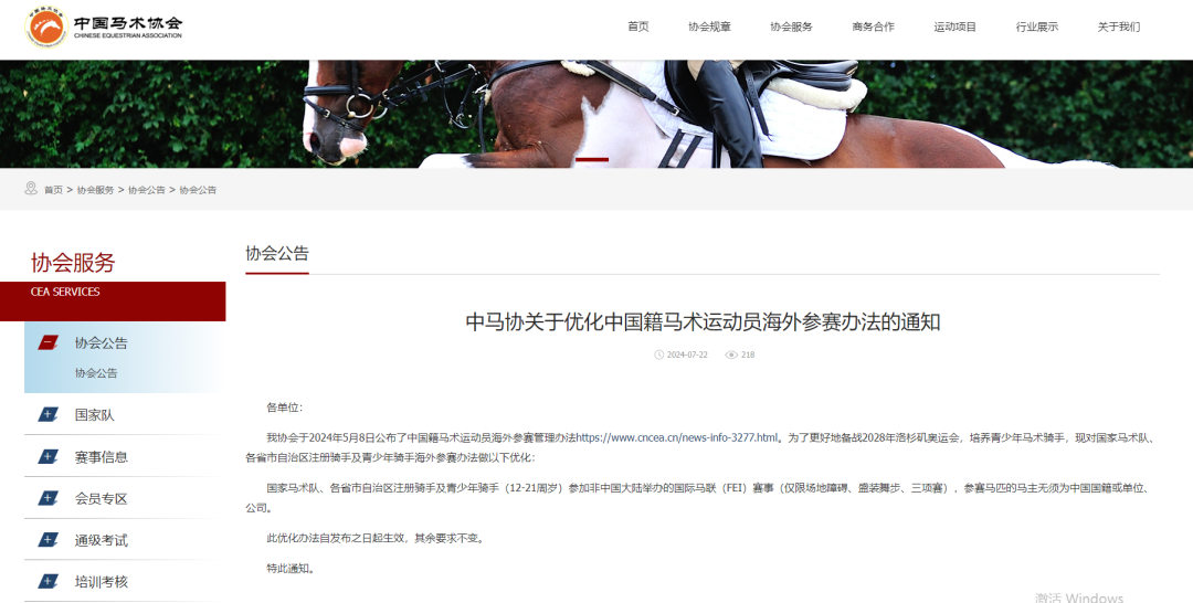 7月22日,中国马术协会发布了《关于优化中国籍马术运动员海外参赛办法的通知》,旨在为2028年洛杉矶奥运会的备战工作提供支持,并培养更多青少年马术骑手。根据通知,国家马术队、各省市自治区注册骑手及12至21周岁的青少年骑手在参加非中国大陆举办的国际马联(FEI)赛事时(仅限场地障碍、盛装舞步、三项赛),将不再要求参赛马匹的马主必须为中国国籍或单位、公司。这一优化措施自发布之日起生效,其他相关规定保持不变。