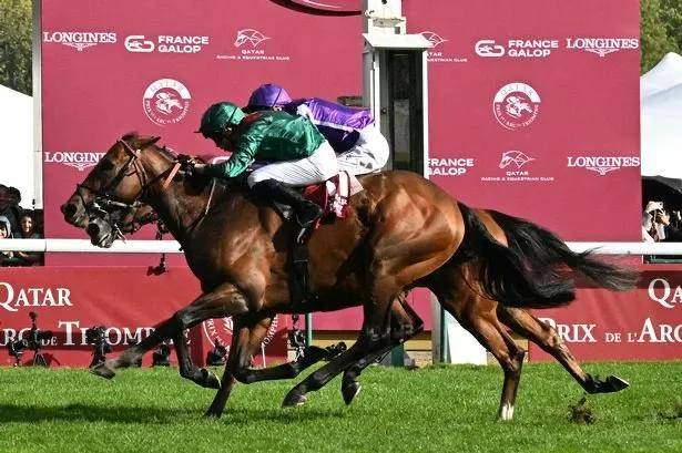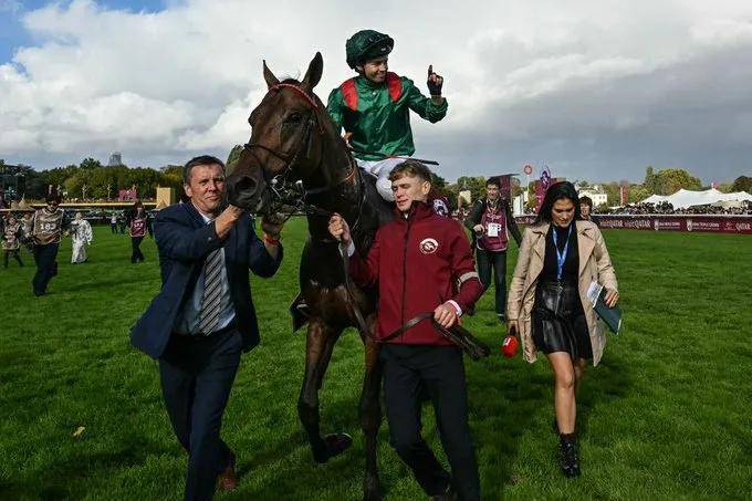 根据赛事视频显示,本场凯旋门大赛末段由“剧唱一姐”(Minnie Hauk)率先突围,但在最后200米处遭到“得令星”(Daryz)强劲挑战。就在观众以为“剧唱一姐”即将锁定胜局之际,“得令星”于终点前完成关键超越,助力阿加汗集团自2008年后再度捧得凯旋门大赛桂冠。