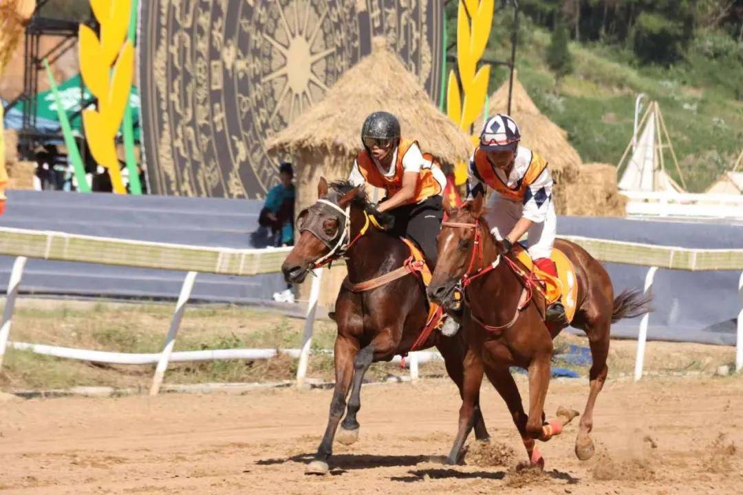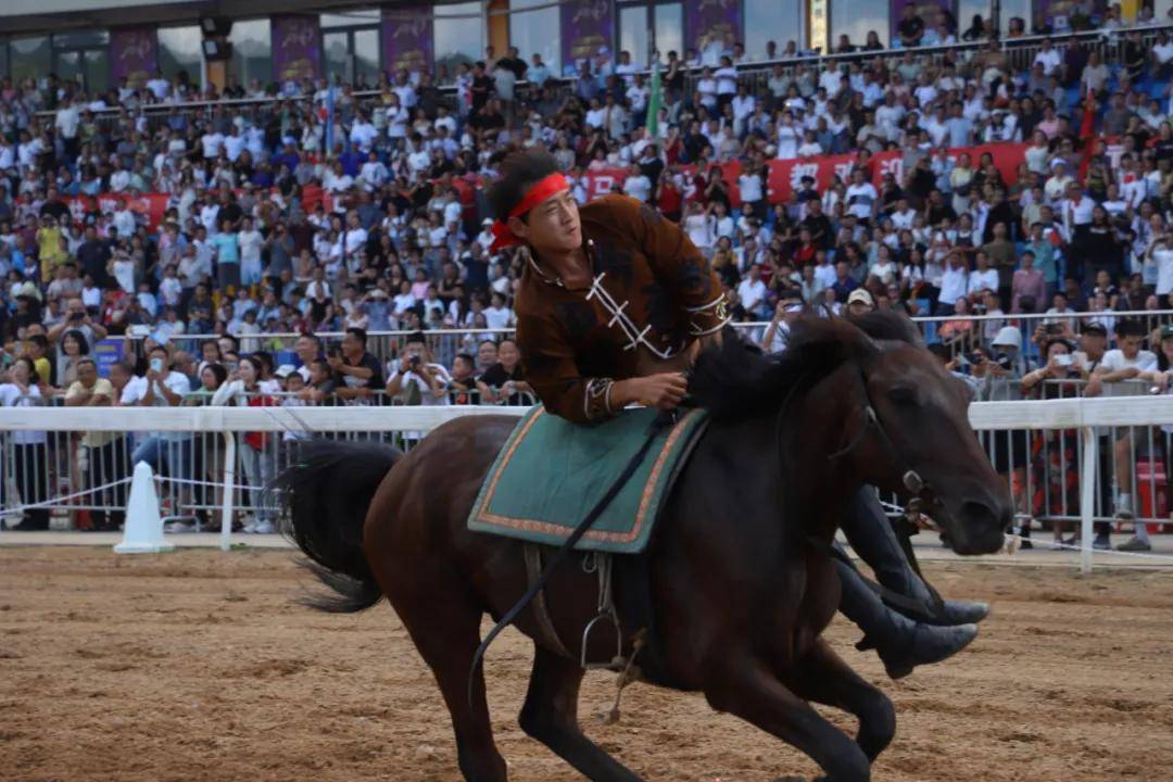赛马间隙,精彩纷呈的文化节目轮番上演。各民族文化展演绚丽多姿,特邀明星深情献唱。而身着民族服装的男女骑手们更是惊艳全场,他们驾驭骏马飞驰在跑道上,不断挑战极限,6人叠罗汉、单人单马站立等高难度动作接连呈现,为游客们献上了一场震撼绝伦的文化盛宴。