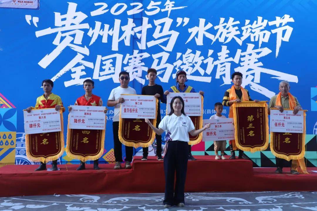 经过激烈较量,来自云南省余涛驾驭的“兴邦大运”获得公开大马组1700米超级大奖冠军;来自内蒙古自治区双喜驾驭的“东方公主”获得公开小马组1700米冠军;来自云南省余涛驾驭的“兴邦大运”获得公开大马组3300米冠军;来自贵州省吴治福驾驭的“未来可期”获得公开小马组3300米冠军;来自贵州省高辉驾驭的“AK47”获得民族大马组1700米冠军;来自贵州省石绍张驾驭的“哪吒”获得民族小马组1700米冠军。县领导何山、韦子涵、吴茂华等为获奖选手颁奖。