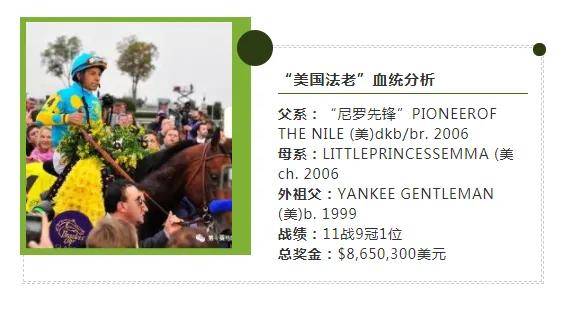 竞赛生涯11战9冠1位,收获总奖金高达8,650,300美元(折合人民币约5956万元),带着这样的佳绩,“美国法老”于2015年11月正式退役后,正式入驻美国肯塔基州的阿什福德马房(Ashford Stud),开启种公马生涯。之后大约两周,“美国法老”在2016年的种马费定在了20万美元,这是一匹未经检验的、头年种马的最高纪录。