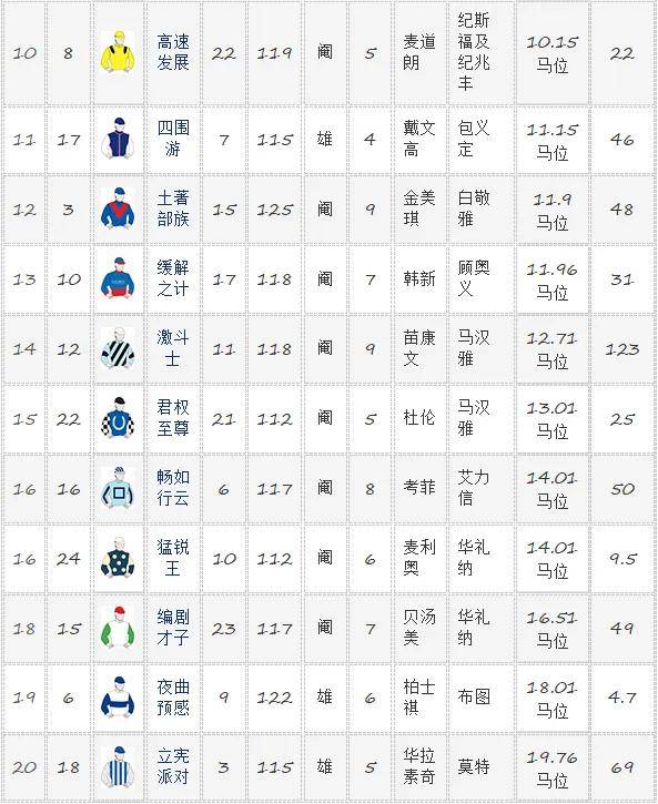 获得第二至第四名的赛驹依次为:“乖女孩”(GOODIE TWO SHOES,爱)、“中土世界”(MIDDLE EARTH,英)以及玉龙马业旗下赛驹“聚星成河”(RIVER OF STARS,爱)。