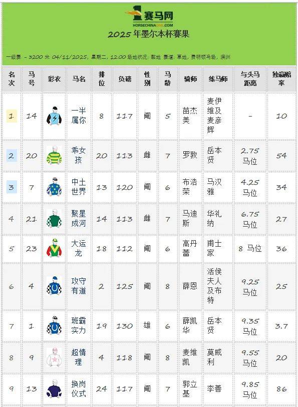 赛名:2025年“墨尔本杯”(Melbourne Cup)
